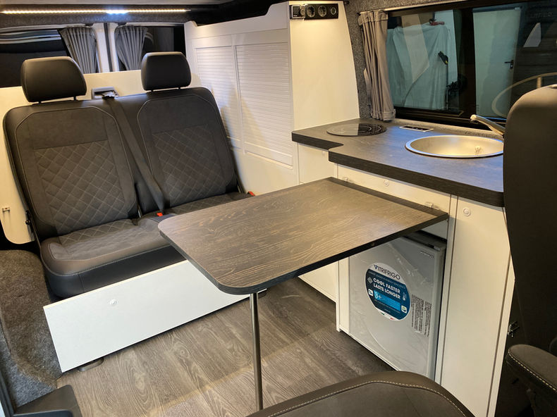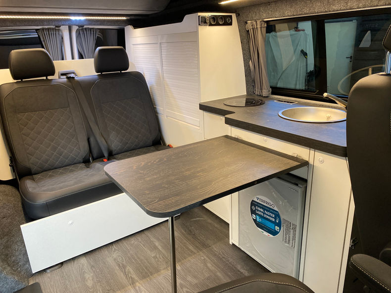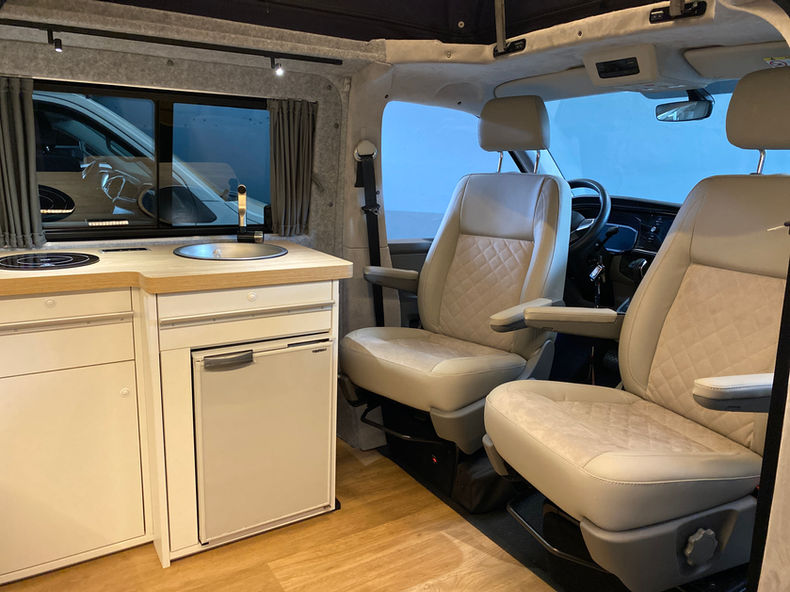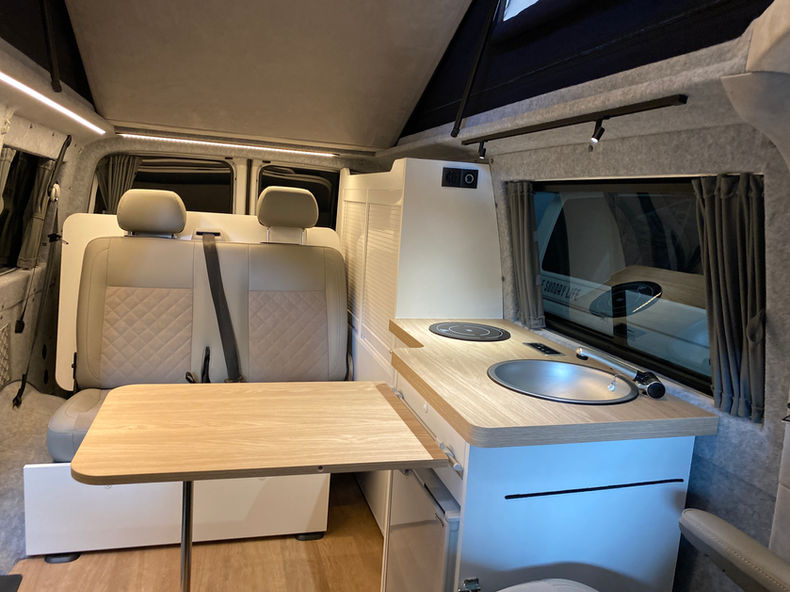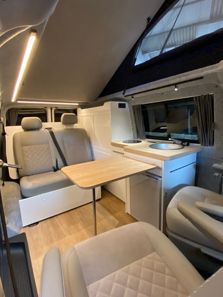 Der Bulli entsteht aus einem Rohdiamanten: dem VW Transporter. Die Wohnräume werden maßgeschneidert konzipiert, individuell angefertigt und brandneu hergestellt. Vom Ausstelldach, der Dusche im Heck, dem 230v Spannungsanschluss, den drehbaren Sitzkonsolen bis hin zu vier Schlafplätzen auf zwei Ebenen. Nichts ist unmöglich.